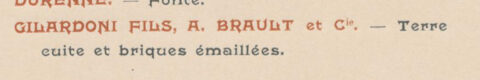 Un autre fournisseur de Guimard en matériaux, exploitant de carrière à Thorigny-sur-Marne et fabricant de plâtres spéciaux, nous était connu par ailleurs. La revue L’Architecture a également mentionné ses produits exposés dans la grande salle de la mairie :