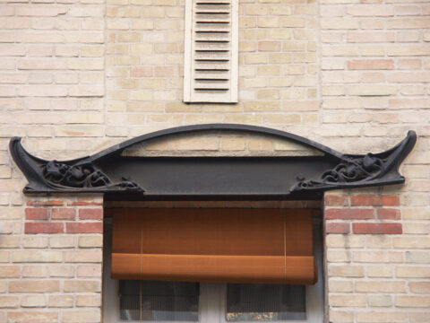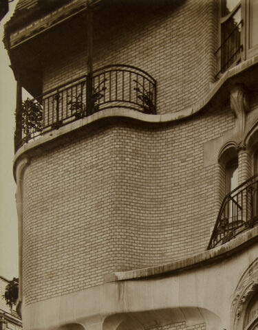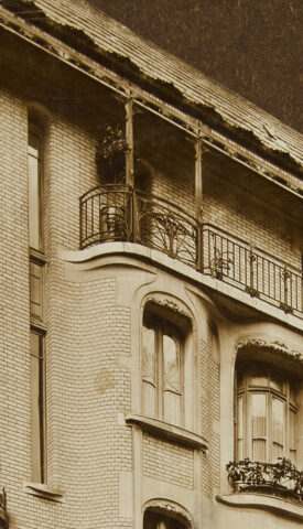 Détail des deuxième et troisième étages de la façade de l’hôtel Guimard. Bibliothèque des arts décoratifs, don Adeline Oppenheim-Guimard, 1948. Photo Laurent Sully Jaulmes.
