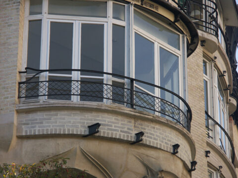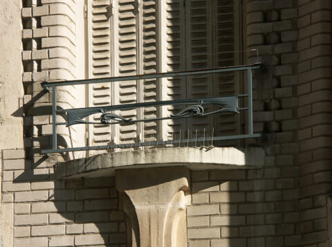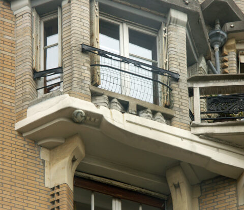 Détail de la façade sur rue du deuxième étage de l’immeuble Guimard du 18 rue Henri-Heine, Paris XVIe, 1926. Photo F. D.