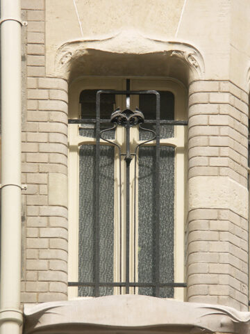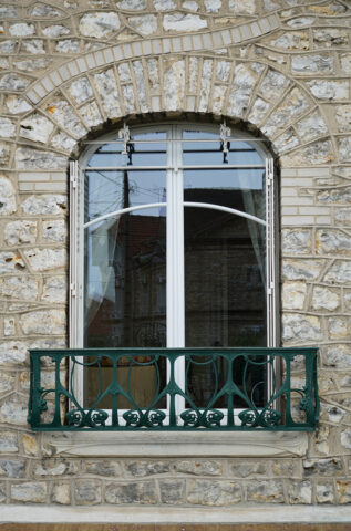 Fenêtre au rez-de-chaussée de la façade sur rue de la villa au 16 rue Jean Doyen à Eaubonne (Val d’Oise), c. 1907. Photo F. D.