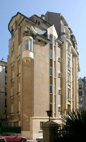 Mais ce sont à ses constructions urbaines, à partir de l’hôtel Deron-Levent (1905-1907), que la brique silico-calcaire semble le mieux convenir. Suivent l’immeuble Trémois de la rue François Millet (1909-1911), les immeubles « modernes » des rue Gros, La Fontaine et Agar, son hôtel particulier de l’avenue Mozart (1909-1912) et l’hôtel Mezzara de la rue La Fontaine (1909-1911), où la brique silico-calcaire est employée concurremment avec la pierre de taille dont la surface varie en fonction de l’effet de luxe recherché.