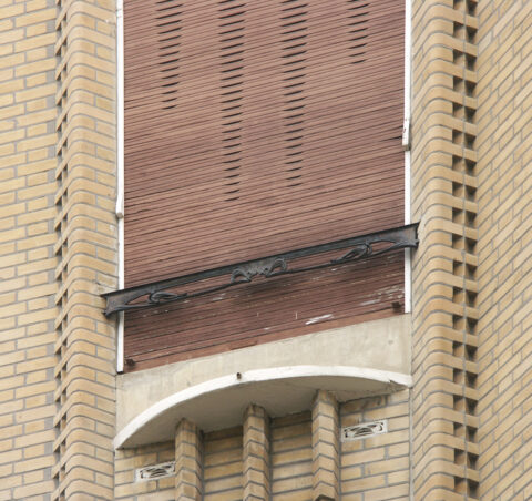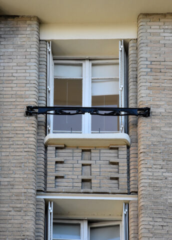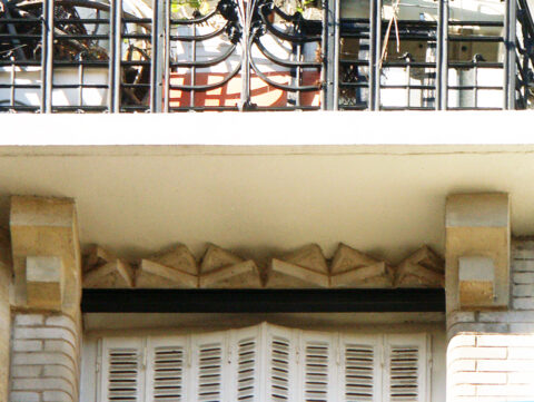 Allège et fenêtre du 5e étage de la façade sur la villa Flore de l’immeuble Houyvet, Paris XVIe, 1926-1927. Photo F. D.