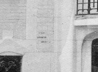 Pour la construction de la mairie, nous sommes certains de l’utilisation du « pétra-stuc » dont on devine le nom inscrit sur le socle, au-dessus du soupirail[12]. On parvient aussi à lire sur la photographie le nom de Taté.