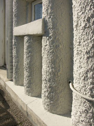 Ces tubes en fibro-ciment semblent avoir une fonction plus structurelle au niveau des terrasses des 6e et 7e étages, analogue à leur utilisation deux ans plus tard par Sauvage qui a expérimenté leur utilisation pour les murs porteurs d’habitations individuelles construites avec des éléments préfabriqués.