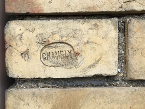 Généralement, les briques reçoivent sur l’une de leur panneresses (les faces longues et étroites) la marque de la briqueterie, imprimée en creux. Pour l’instant, nous n’avons relevé que le logo « CB » sur les briques de l’hôtel Roszé et celui de la briqueterie de Chambly (dans l’Oise) sur celles du Castel Val. Il est possible que dans la plupart des cas, Guimard ait donné pour consigne à l’entrepreneur de cacher les marques en exposant la panneresse opposée.