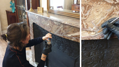 Les cheminées en marbre de Guimard — 2 — Restauration du décor sculpté d’une cheminée de l’immeuble Trémois