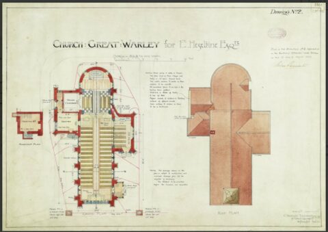 Church, Great Warley, contract drawing, plan, Charles Harrison Townsend, 1902, Royal Institute of British Architects, PA 901/3.