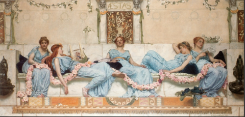 [21] En 1889, il réalise pour Alma Tadema un bas-relief d’après son tableau The Women of Amphissa. Ibidem.