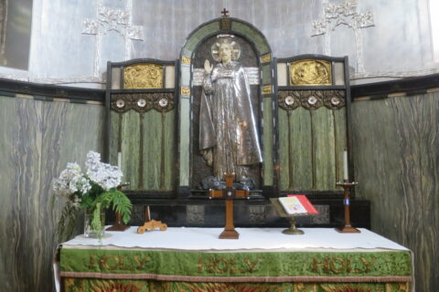 L’église paroissiale dédiée à Sainte Marie la Vierge, située dans le village de Great Warley dans le comté d’Essex, est célèbre en Angleterre pour sa somptueuse décoration intérieure, une œuvre d’art « totale » réalisée au début du XXe siècle par le peintre et sculpteur William Reynolds-Stevens (1862-1943). En raison de deux des matériaux employés dans cette décoration, elle est connue localement comme the pearl church, l’église au nacre, ou encore the aluminium church, l’église à l’aluminium. Mais levons de suite toute ambiguïté : à Great Warley, l’aluminium n’est utilisé qu’à des fins décoratives et ne joue aucun rôle structurel.