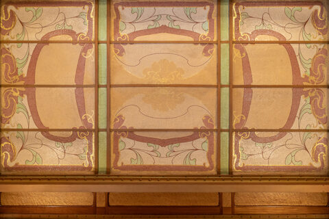 Victor Horta, hôtel Solvay, 120 avenue Louise à Bruxelles, 1895-1902, plafond en mosaïque du palier du bel étage. Photo Gilles van den Abeele.