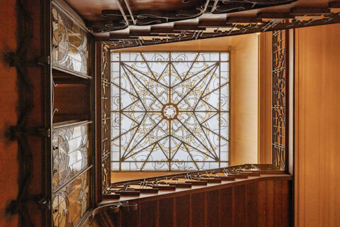 Victor Horta, hôtel Solvay, 224 avenue Louise à Bruxelles, 1895-1902, paroi et verrière de la cage de l’escalier privé. Photo Gilles van den Abeele.